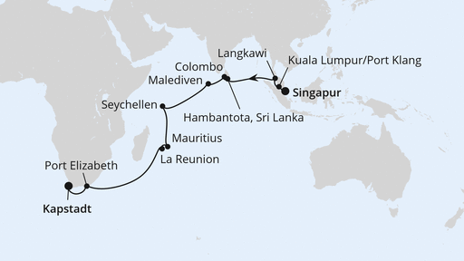 Von Singapur über Mauritius nach Kapstadt Kreuzfahrt