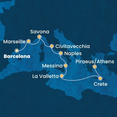 Spanien, Frankreich, Italien, Malta, Griechenland Kreuzfahrt