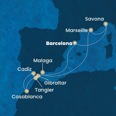 Spanien, Marokko, Gibraltar (Großbritannien), Frankreich, Italien Kreuzfahrt