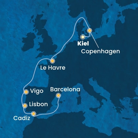 Deutschland, Dänemark, Frankreich, Spanien, Portugal Kreuzfahrt