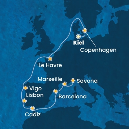 Deutschland, Dänemark, Frankreich, Spanien, Portugal, Italien Kreuzfahrt