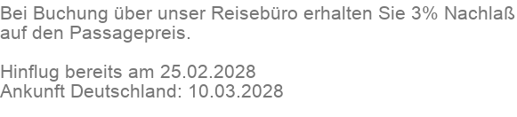 Dubai, Abu Dhabi, Khasab, Maskat, Entspannung auf See, Malediven, Malediven, Entspannung auf See, Colombo (Sri Lanka), Hambantota, Entspannung auf See, Phuket, Porto Malai, Port Kelang (Kuala Lumpur), Singapur, Singapur
